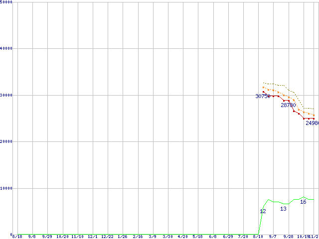 | Athlon 64 X2 6400+ (3.2GHz,L2 1MB×2)の価格推移 | | | (2006年8月18日~2007年11月2日) |