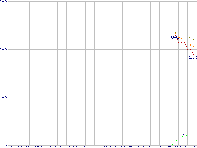 | ST3500320NS (500GB,32MB)の価格推移 | | | (2006年8月17日~2007年11月1日) |