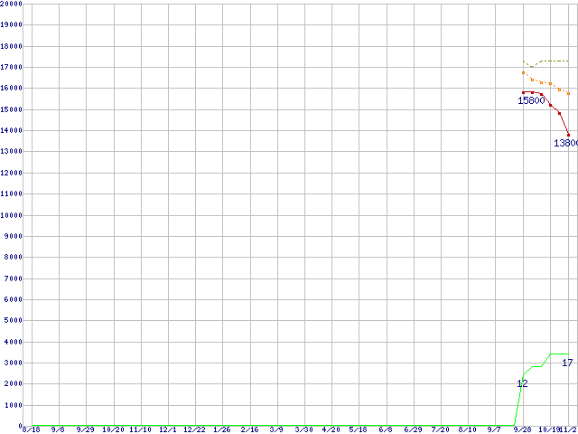 | Athlon 64 X2 5000+ Black Edition (2.6GHz,L2 512KB×2,TDP65W)の価格推移 | | | (2006年8月18日~2007年11月2日) |