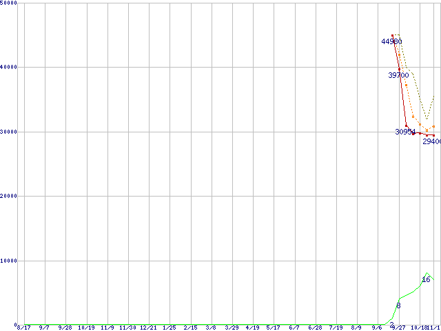 | WD10EACS (1TB,16MB)の価格推移 | | | (2006年8月17日~2007年11月1日) |