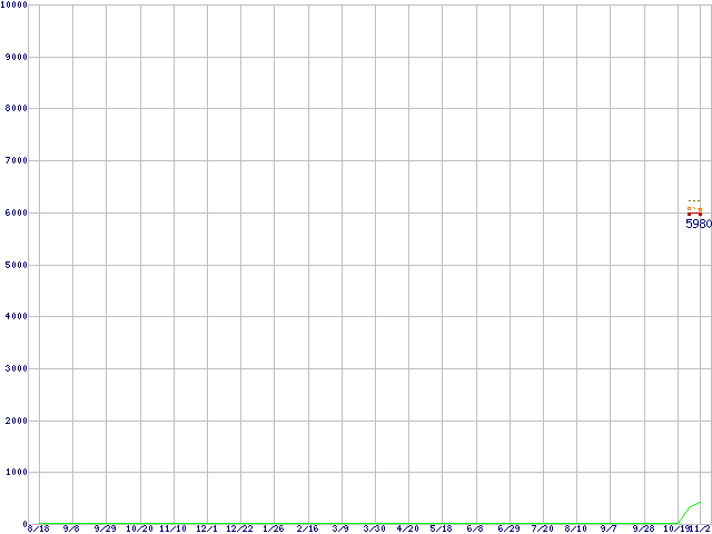 | Sempron LE-1200 (2.1GHz,L2 512KB)の価格推移 | | | (2006年8月18日~2007年11月2日) |