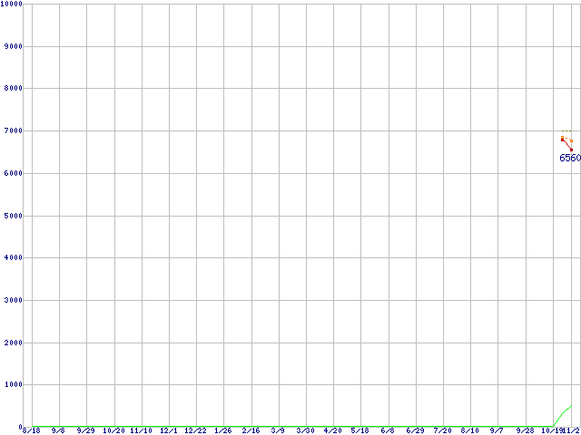 | Sempron LE-1250 (2.2GHz,L2 512KB)の価格推移 | | | (2006年8月18日~2007年11月2日) |