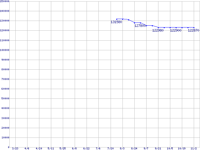 | LGA775 (FSB 1066MHz,L2 4MB×2,Quad Core,EM64T対応)の最安値推移 | | | (2007年3月23日~2007年11月2日) |