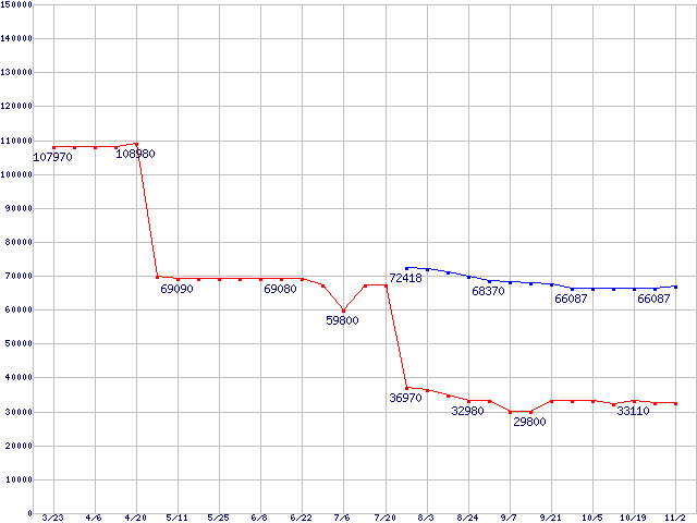 LGA775 (FSB 1333MHz,Dual Core,EM64T対応,TDP 65W)の最安値推移