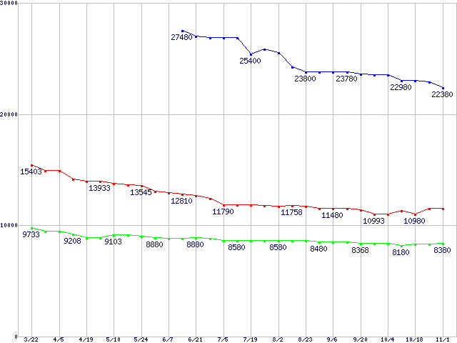 WD Caviar GP (7200rpm,SATA 3Gb/s,16MB)の最安値推移