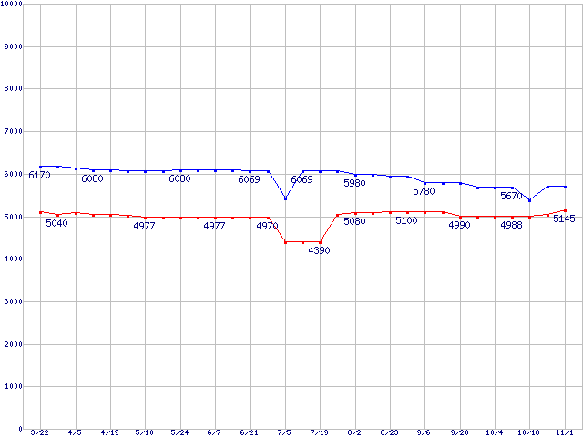 Deskstar T7K500 (7200rpm,Ultra ATA/133)の最安値推移