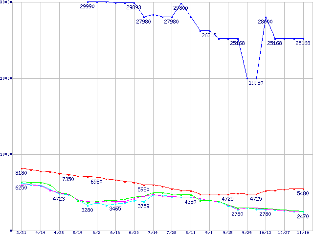 512MBモジュールの最安値推移
