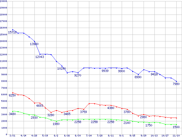 PC2-6400(DDR2-800) DDR2 SDRAM DIMMの最安値推移