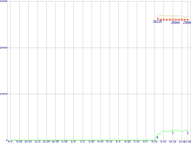 | Core 2 Duo T7250 (2GHz,L2 2MB)の価格推移 | | | (2006年9月1日~2007年11月16日) |