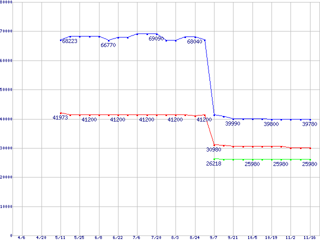 Socket F (FSB 1000MHz,L2 512MBx4,L3 2MB,Quad Core)の最安値推移