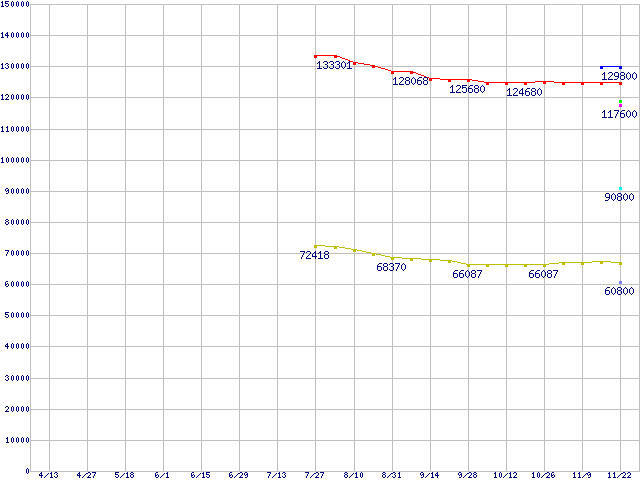 CPU主要製品(最安値6万円以上)の最安値推移