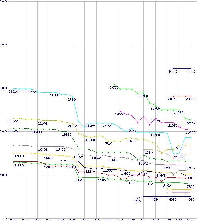 ※製品名をクリックすると個別のグラフを表示します ※点線部は販売店が確認できなかった、または調査データがないことを示します |