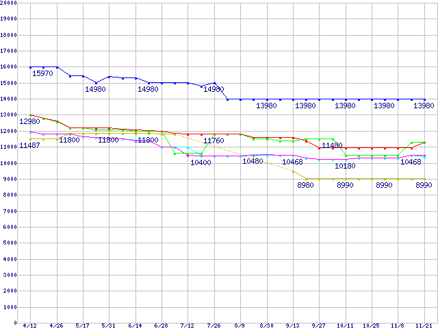 ※点線部は販売店が確認できなかった、または調査データがないことを示します