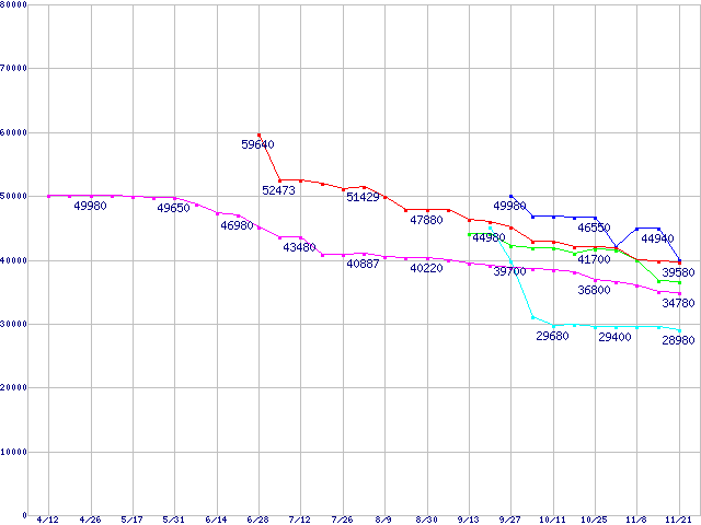 HDD主要製品(最安値1万円未満)の最安値推移