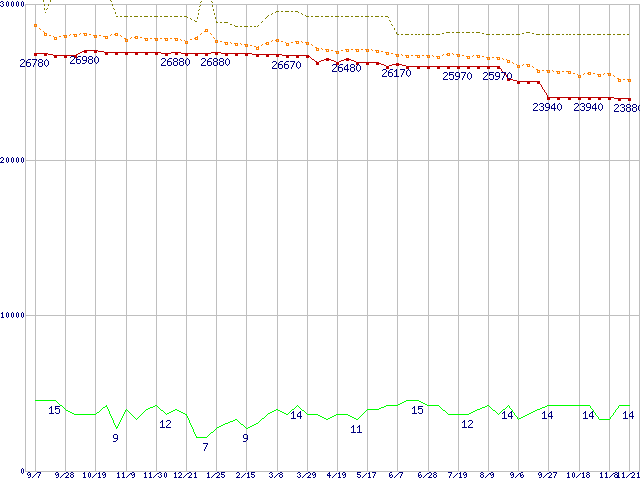 | WD1500ADFD (150.0GB)の価格推移 | | | (2006年9月7日~2007年11月21日) |