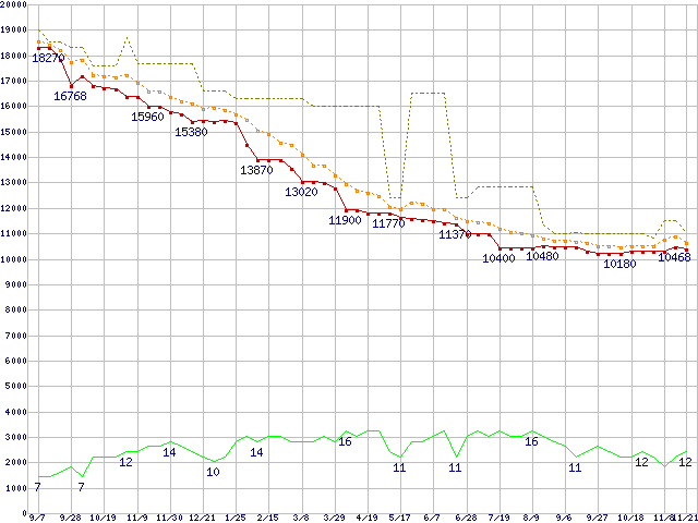 | HDT725040VLAT80 (400GB,8MB)の価格推移 | | | (2006年9月7日~2007年11月21日) |