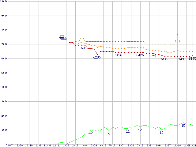 | ST3160815AS (160GB,8MB)の価格推移 | | | (2006年9月7日~2007年11月21日) |