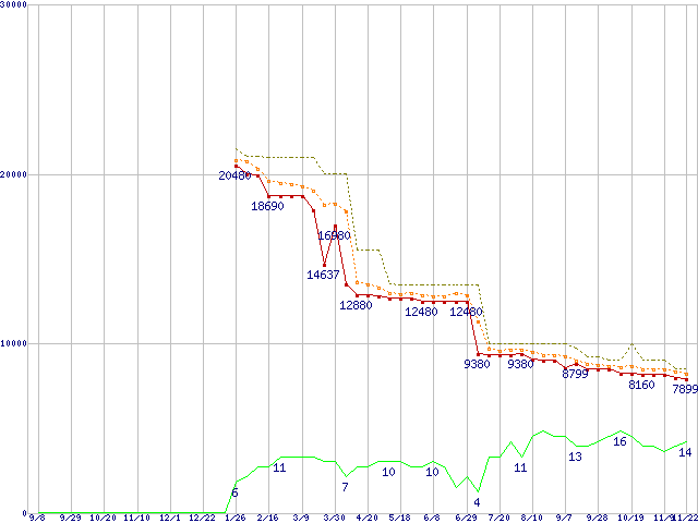 | Athlon 64 X2 4000+ (2.1GHz,L2 512KB×2,TDP65W)の価格推移 | | | (2006年9月8日~2007年11月22日) |