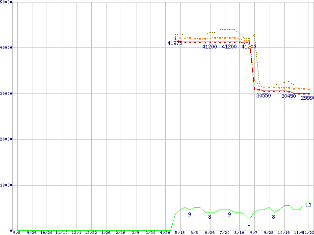 | Core 2 Duo T7500 (2.2GHz,L2 4MB)の価格推移 | | | (2006年9月8日~2007年11月22日) |
