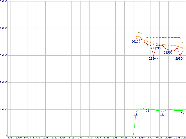 | Core 2 Duo E6850 (3GHz,L2 4MB)の価格推移 | | | (2006年9月8日~2007年11月22日) |