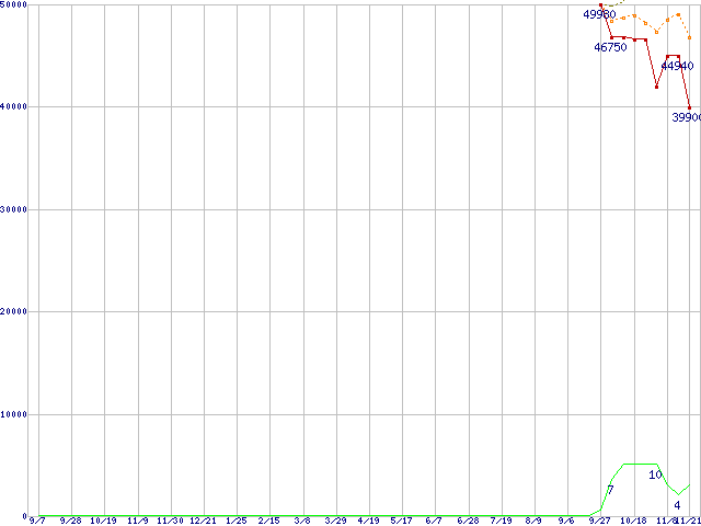 | ST31000340NS (1TB,32MB)の価格推移 | | | (2006年9月7日~2007年11月21日) |