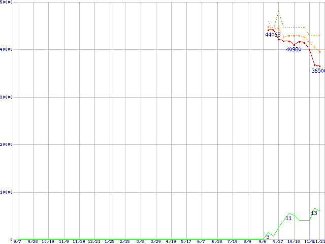 | ST31000340AS (1TB,32MB)の価格推移 | | | (2006年9月7日~2007年11月21日) |