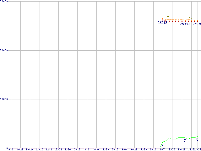 | Core 2 Duo T7250 (2GHz,L2 2MB)の価格推移 | | | (2006年9月8日~2007年11月22日) |