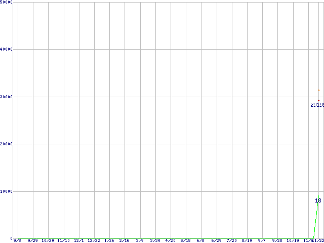 | Phenom 9500 (2.2GHz,L2 512KB×4,L3 2MB)の価格推移 | | | (2006年9月8日~2007年11月22日) |