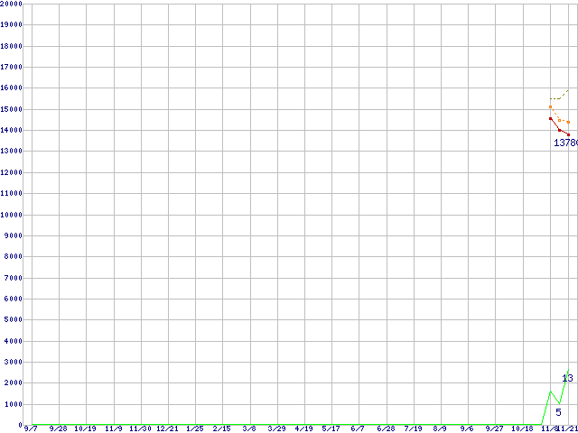 | HDP725050GLA360 (500GB,16MB)の価格推移 | | | (2006年9月7日~2007年11月21日) |