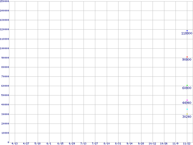 | LGA771(FSB 1333MHz,Quad Core,L2 6MB×2,TDP 80W)の最安値推移 | | | (2007年4月13日~2007年11月22日) |
