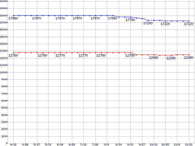 WD Raptor (10000rpm,SATA 1.5Gb/s,16MB,NCQ)の最安値推移