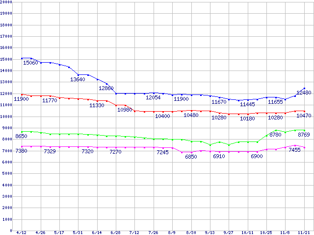 Deskstar P7K500 (7200rpm,SATA 3Gb/s)の最安値推移