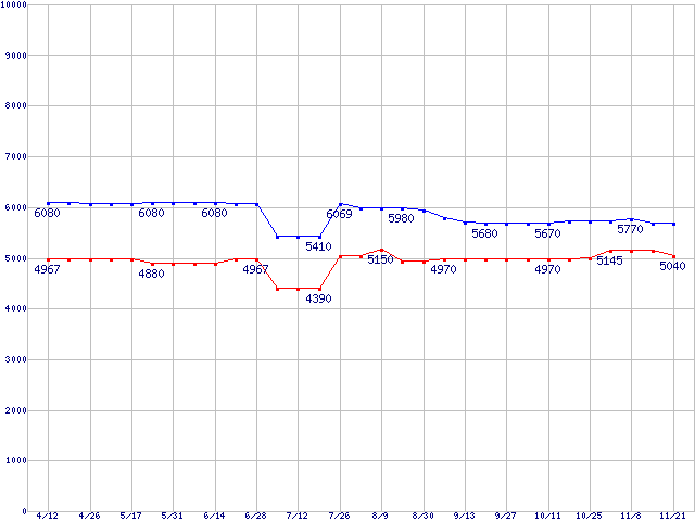 Deskstar T7K500 (7200rpm,Ultra ATA/133)の最安値推移