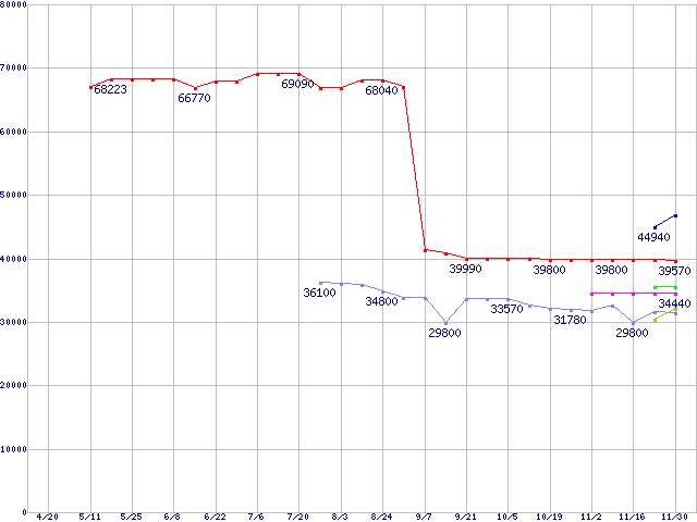 CPU主要製品(最安値3万円~6万円未満)の最安値推移