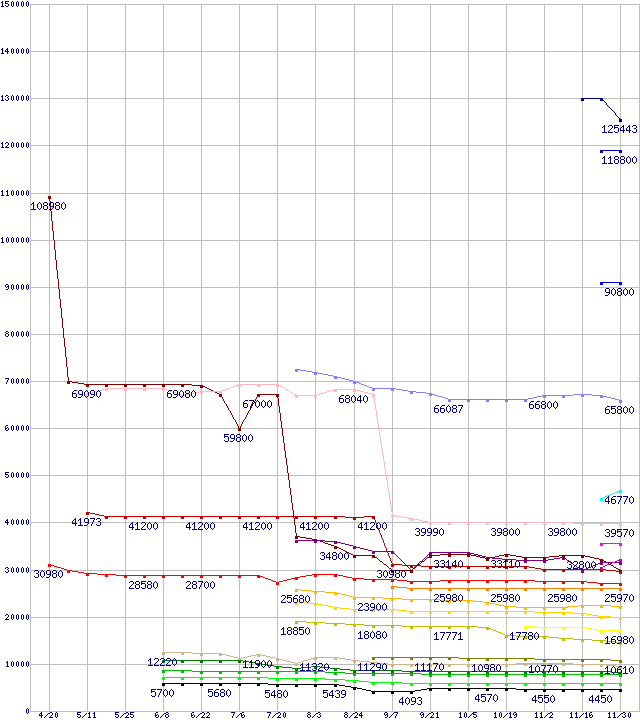 | Intel系CPUの最安値推移 | | | (2007年4月20日~2007年11月30日) |