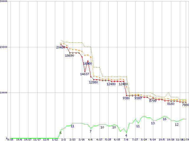 | Athlon 64 X2 4000+ (2.1GHz,L2 512KB×2,TDP65W)の価格推移 | | | (2006年9月15日~2007年11月30日) |