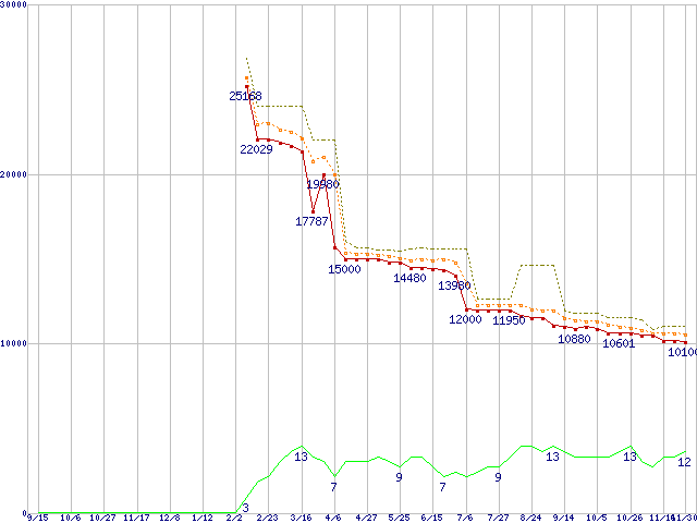 | Athlon 64 X2 4400+ (2.3GHz,L2 512KB×2,TDP65W)の価格推移 | | | (2006年9月15日~2007年11月30日) |