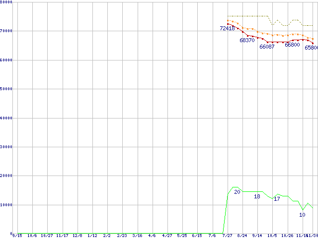 | Core 2 Quad Q6700 (2.66GHz,L2 4MB×2)の価格推移 | | | (2006年9月15日~2007年11月30日) |