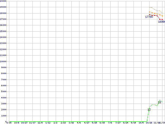 | Core 2 Duo E4600 (2.40GHz,L2 2MB)の価格推移 | | | (2006年9月15日~2007年11月30日) |