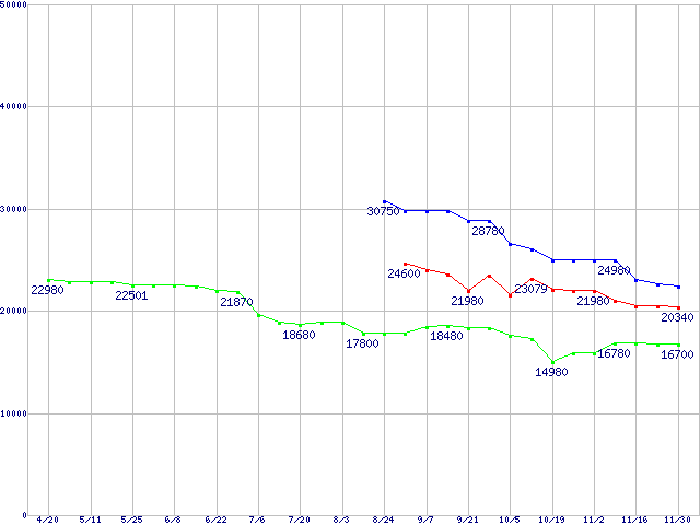 Socket AM2 (HyperTransport,Dual Core)の最安値推移