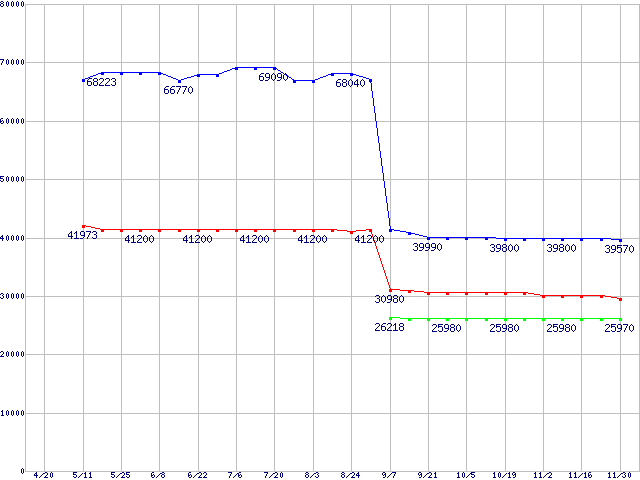Socket F (HyperTransport,L2 512MBx4,L3 2MB,Quad Core)の最安値推移