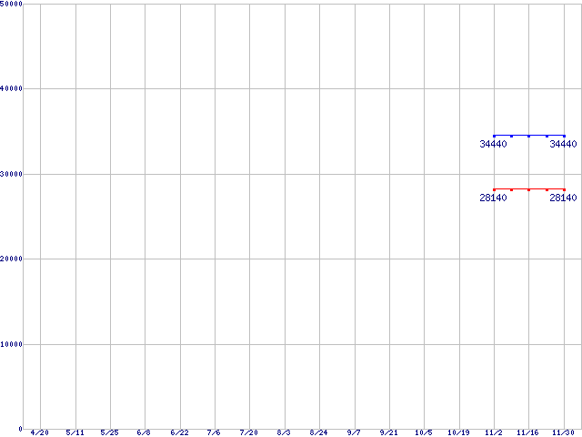 | Socket F (HyperTransport,L2 512MBx4,L3 2MB,Quad Core)の最安値推移 | | | (2007年4月20日~2007年11月30日) |