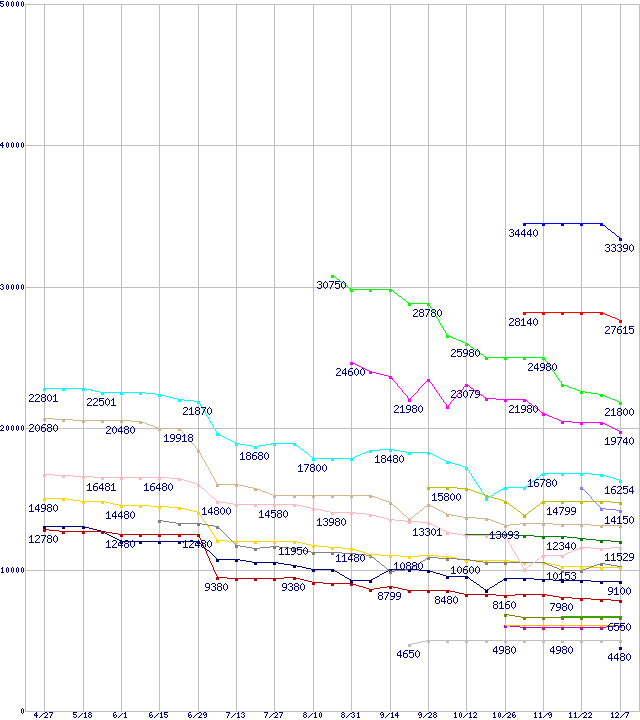 | AMD系CPUの最安値推移 | | | (2007年4月27日~2007年12月7日) |