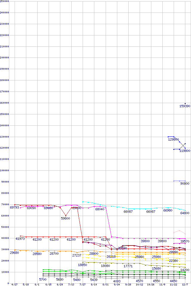 | Intel系CPUの最安値推移 | | | (2007年4月27日~2007年12月7日) |
