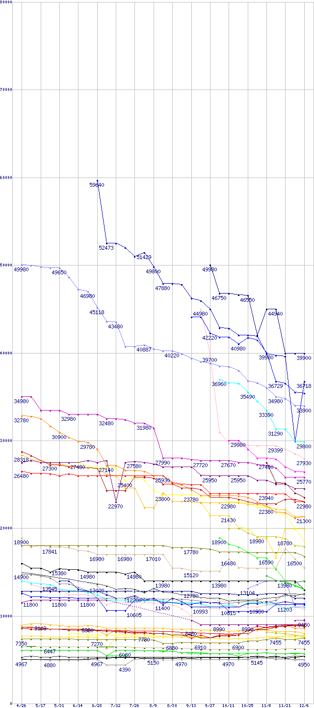 [次グラフ]:HDD 80GB~100GB未満の最安値推移