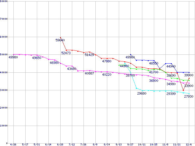 HDD主要製品(最安値1万円未満)の最安値推移
