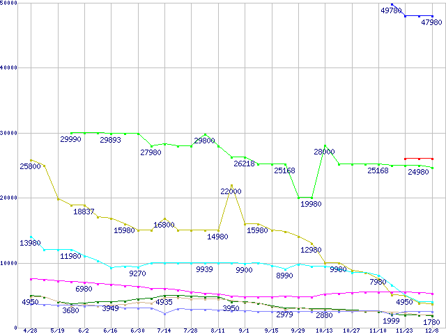 ※点線部は販売店が確認できなかった、または調査データがないことを示します