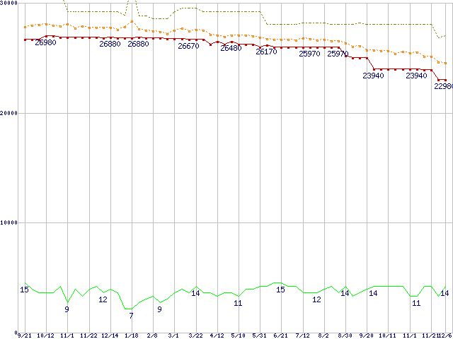 | WD1500ADFD (150.0GB)の価格推移 | | | (2006年9月21日~2007年12月6日) |