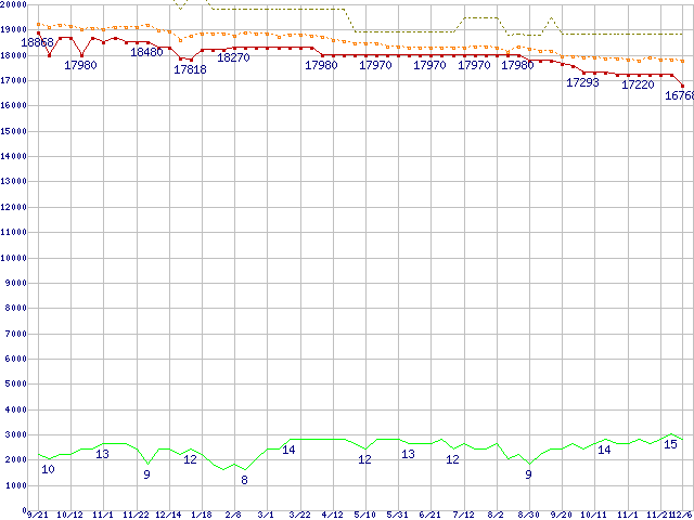 | WD740ADFD (74.3GB)の価格推移 | | | (2006年9月21日~2007年12月6日) |