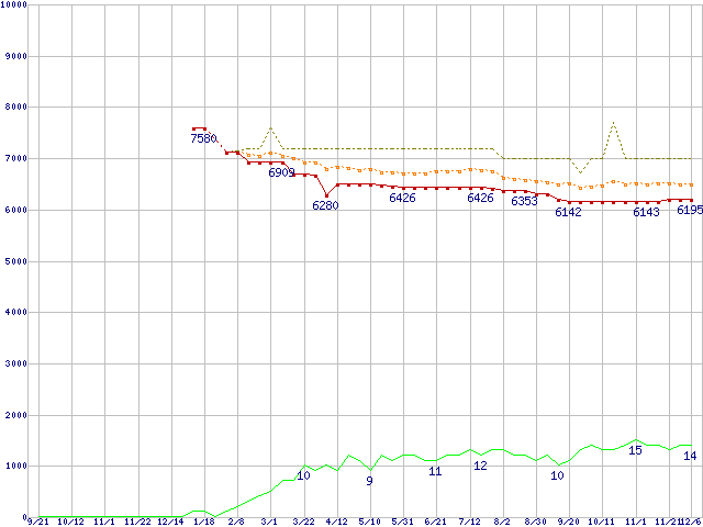 | ST3160815AS (160GB,8MB)の価格推移 | | | (2006年9月21日~2007年12月6日) |